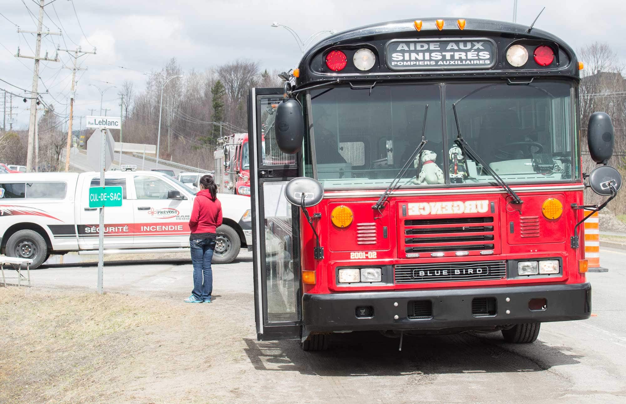 L’autobus d’Aide aux sinistrés était sur les lieux et a porté assistance aux victimes, qui ont pu se retrouver en sécurité. Lundi, le poste d'aide aux sinistrés servait surtout aux secouristes qui se trouvaient sur place.