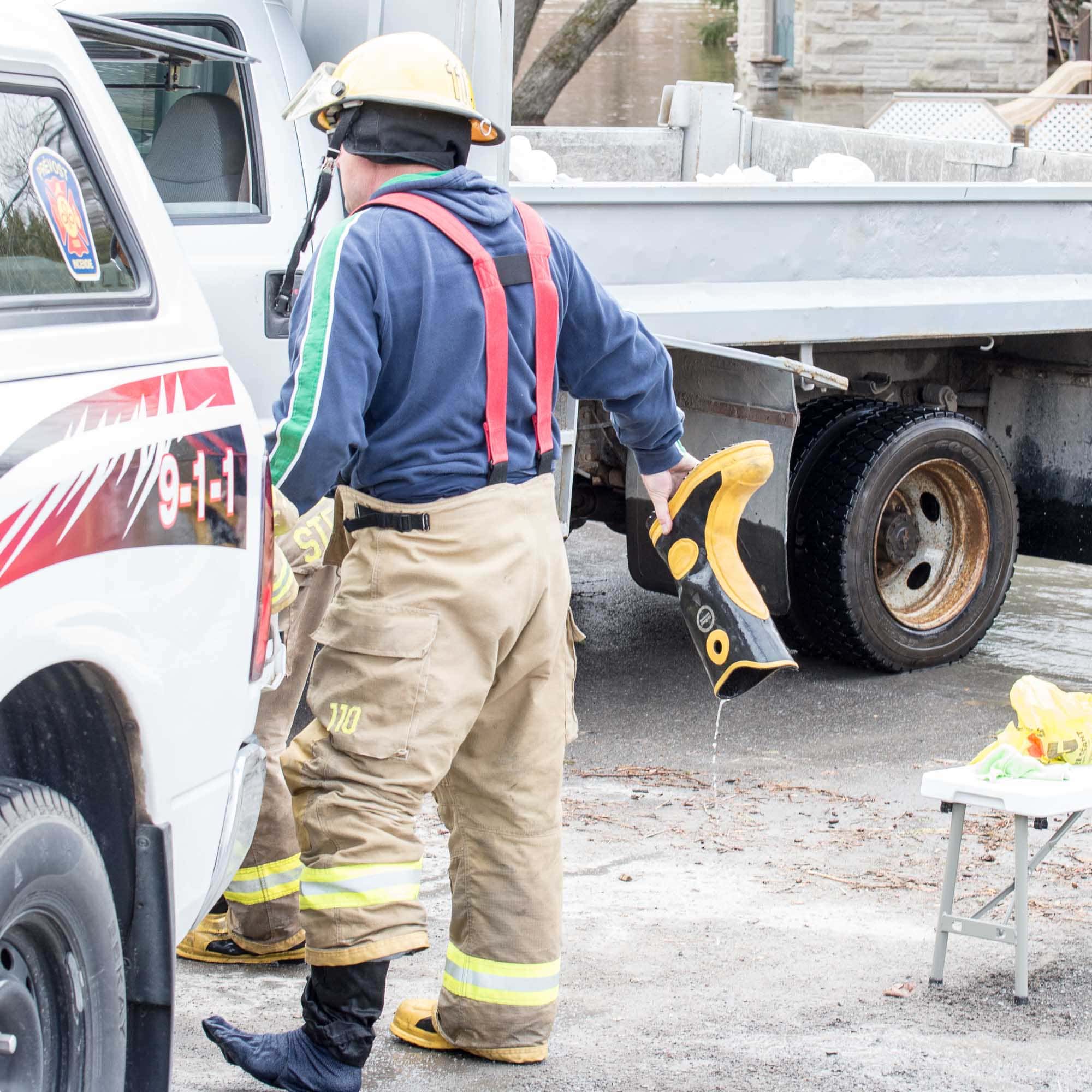 Lundi matin, ce sont surtout des pompiers de Sainte-Sophie qui étaient sur les lieux, venus prendre la relève de leurs collègues de Prévost. Dès lundi midi, on observait une légère baisse du niveau de l'eau, mais les secouristes demeuraient sur place pour surveiller la situation.