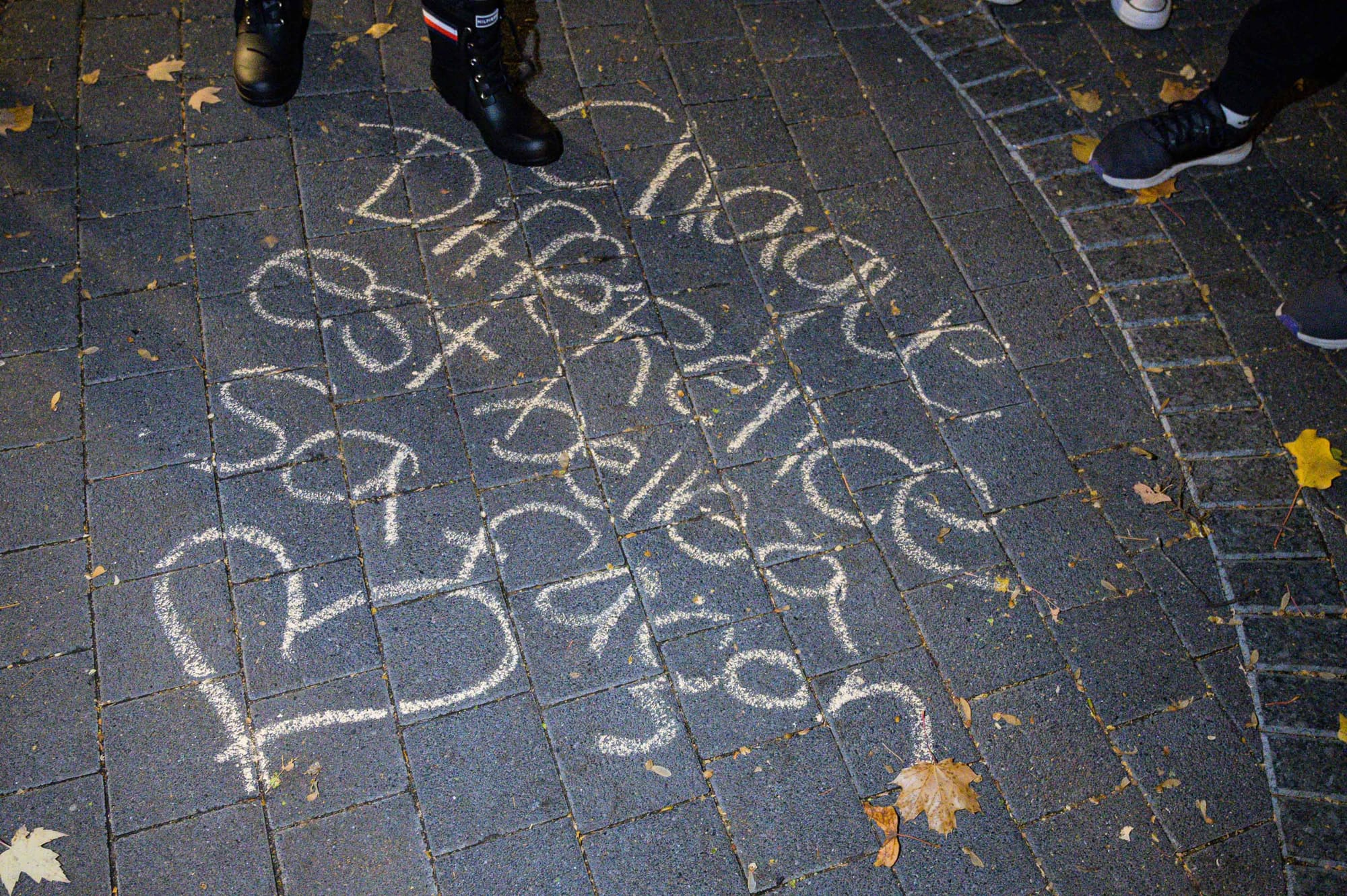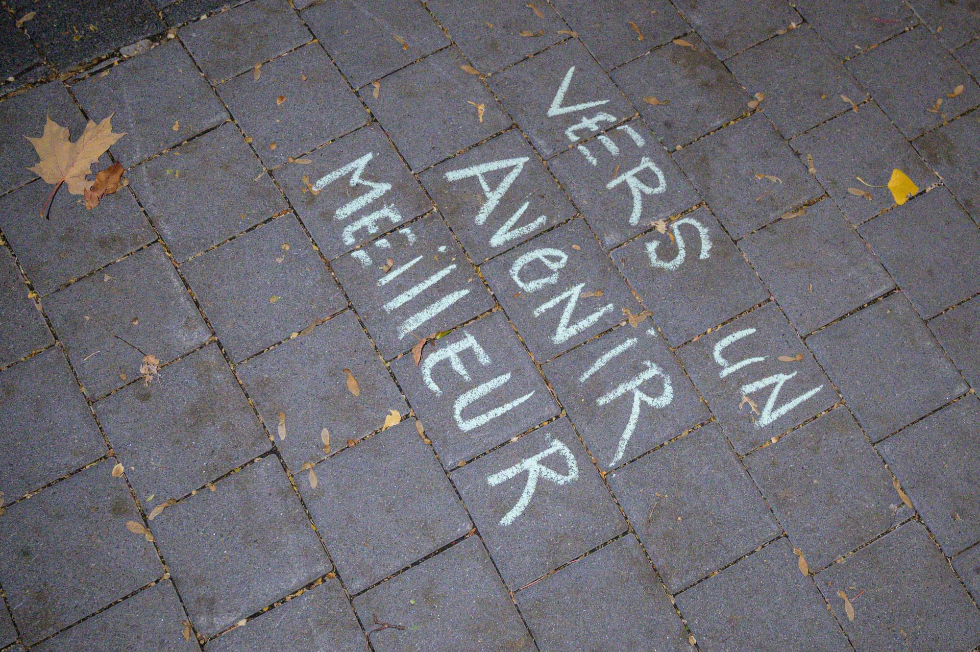 Les organisateurs de la marche ont invité les participants à laisser des messages personnels à la craie, sur les pavés du parc Labelle. Nous en avons relevé quelques-uns.