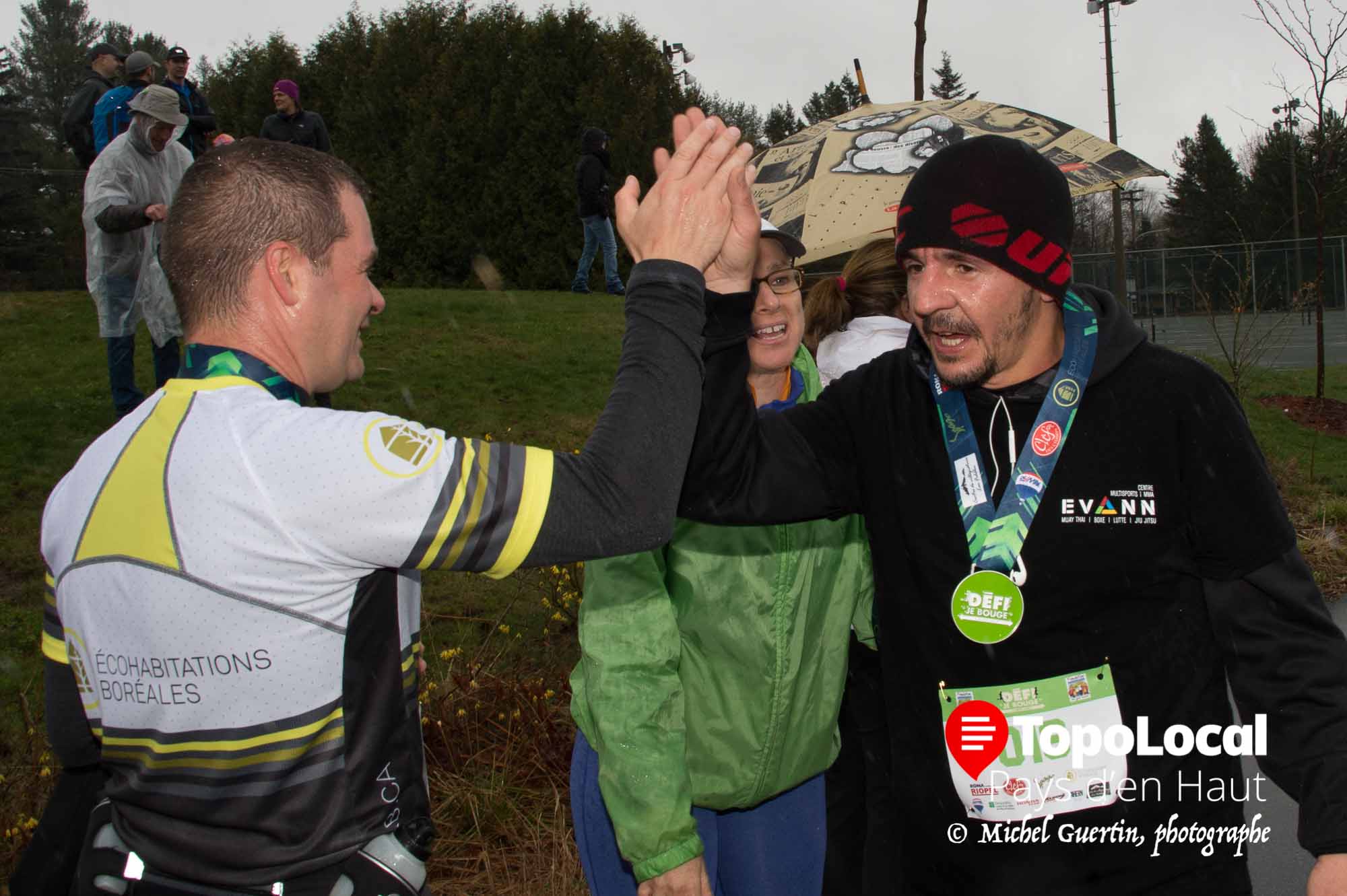 À 5 heures du matin samedi, il tombait des clous à Sainte-Adèle. Une catastrophe s'annonçait pour le Défi Je Bouge. Les organisateurs craignaient pour la participation. Tant d'effort et de préparations semblaient tomber à l'eau...