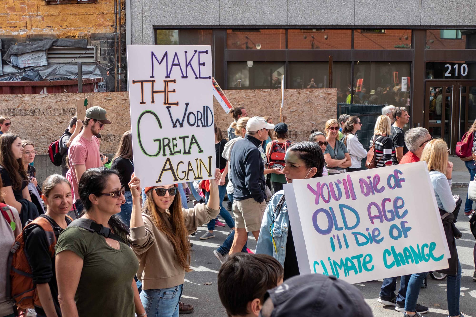 Alors qu'on déclarait une foule d'un maximum de 500 000 personnes pour une marche organisée à Montréal en présence de Greta Thunberg, ce sont peut-être 1500 personnes qui sont sorties dans les rues de Saint-Jérôme pour faire leur grève locale pour le climat, le 27 septembre 2019.