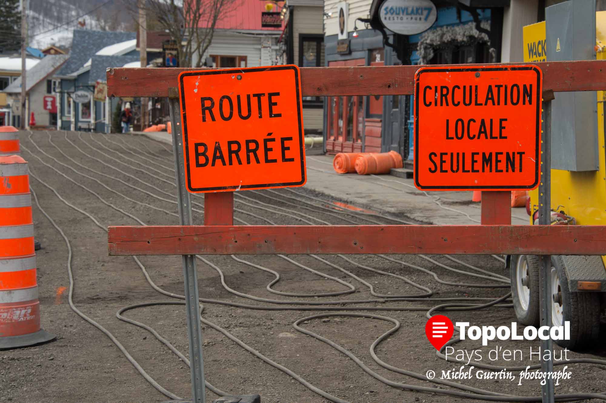Ces fameux cônes ont retrouvé leur utilité sur la rue Principale de Saint-Sauveur, eux qui avaient passé près de 42 mois à tout regarder les automobilistes passer et 6 mois de plus à regarder les travaux en exécution à l'entrée de Sainte-Adèle.