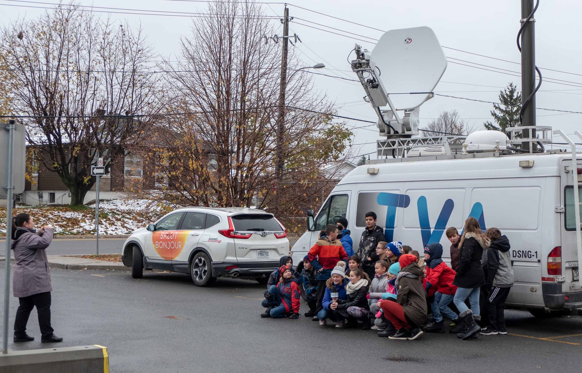 L'équipe météo de l'émission Salut Bonjour diffusée à TVA était sur place parce que cette école a été nommée finaliste du concours de l'école la plus dynamique du Québec.