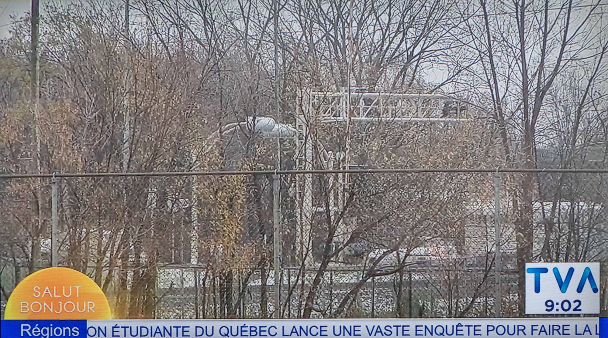 Détail moins intéressant: On a aussi pu apercevoir à la télé l'intersection de la voie ferrée et de la route 158, vers 9h02.