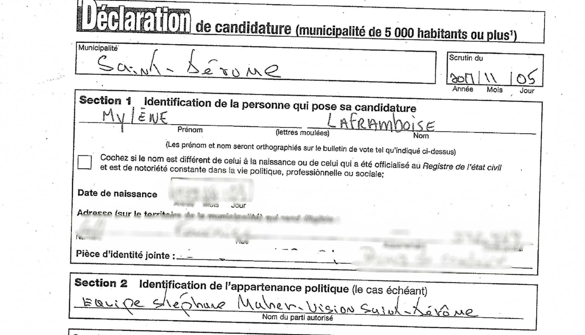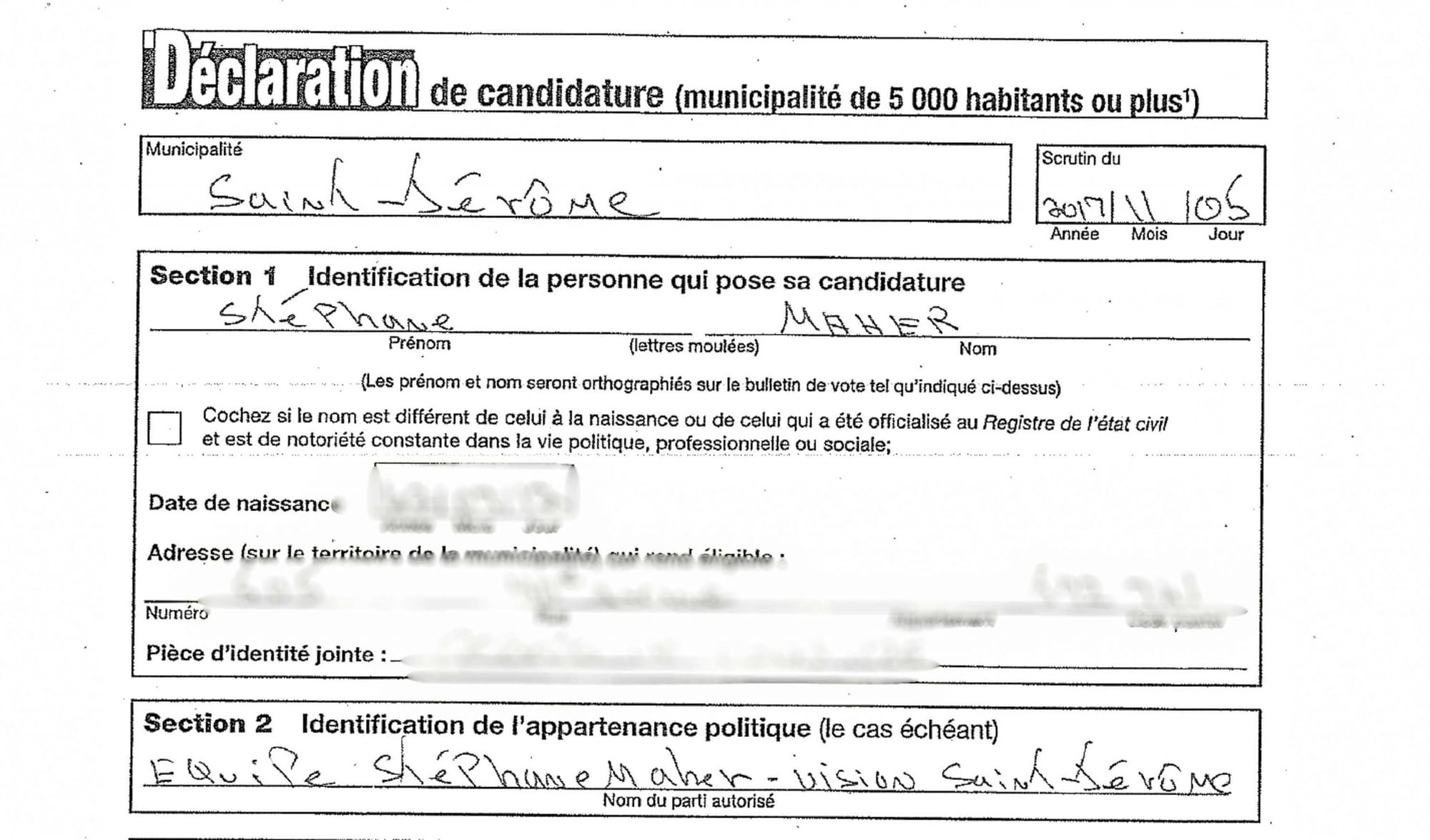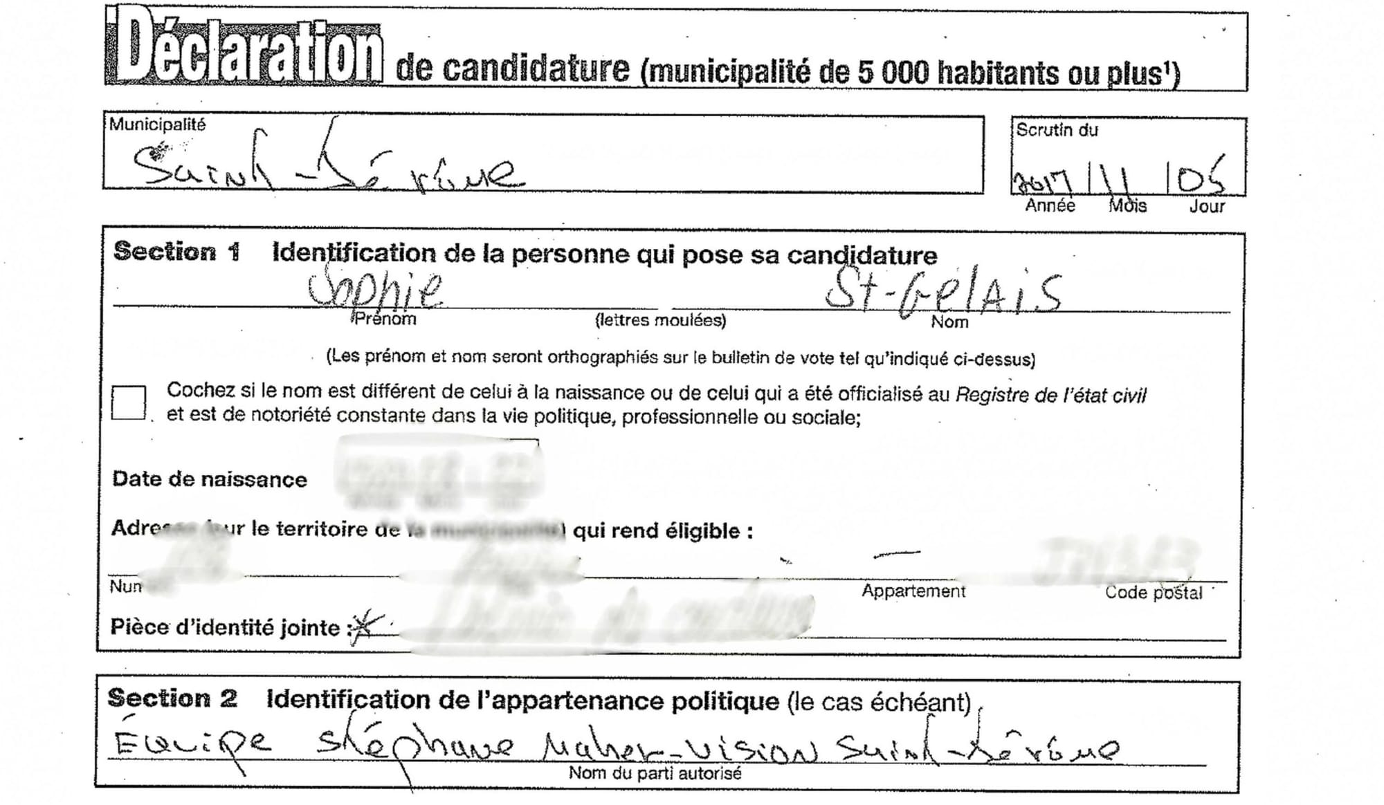 D’autres faits permettent aussi de croire que la candidature de Sophie Saint-Gelais, tout comme celle de Mylène Laframboise, ont été préparées de façon concertée et/ou simultanée par Maher et son entourage. À cet égard, quand on examine les bulletins de candidature des candidats aux élections de 2017, ils revêtent un certain intérêt.