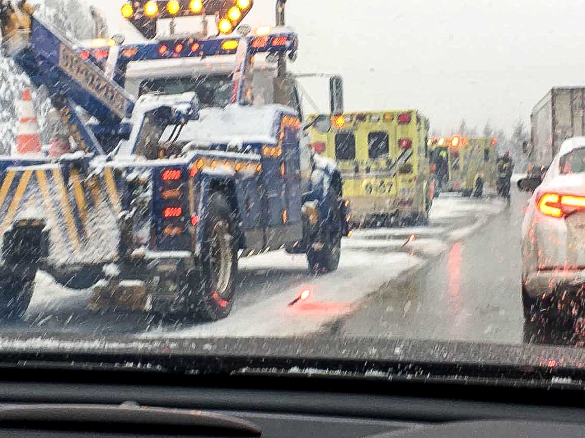 Précision: À Ste-Adèle, #A15 sud (des Laurentides) hauteur du km 63 fermée pour sécuriser la chaussée suite à 2 accidents.
