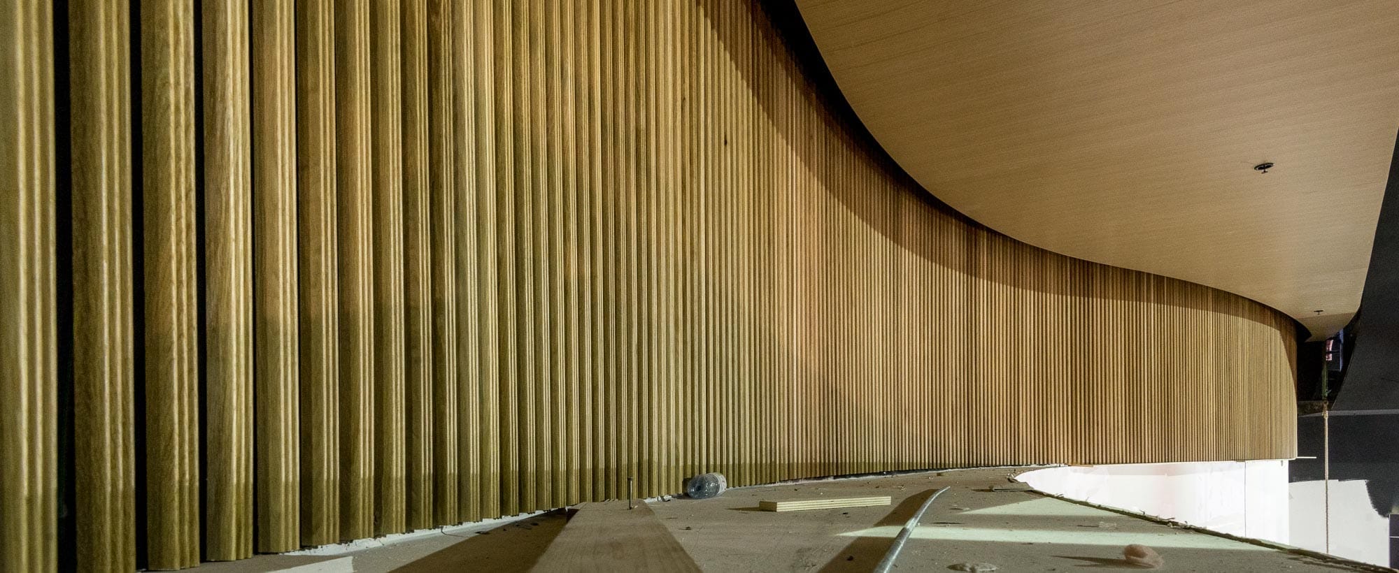 Chose certaine, on constate un bon degré d'avancement par rapport à notre dernière visite, en janvier 2016. À l'intérieur, la mécanique du bâtiment (ventilation, plomberie, électricité) semble bientôt complète. On applique aussi sur certains des murs de la salle l'élégant revêtement de bois qui devrait, à première vue, contribuer à créer un environnement chaleureux et une enveloppe sonore feutrée.