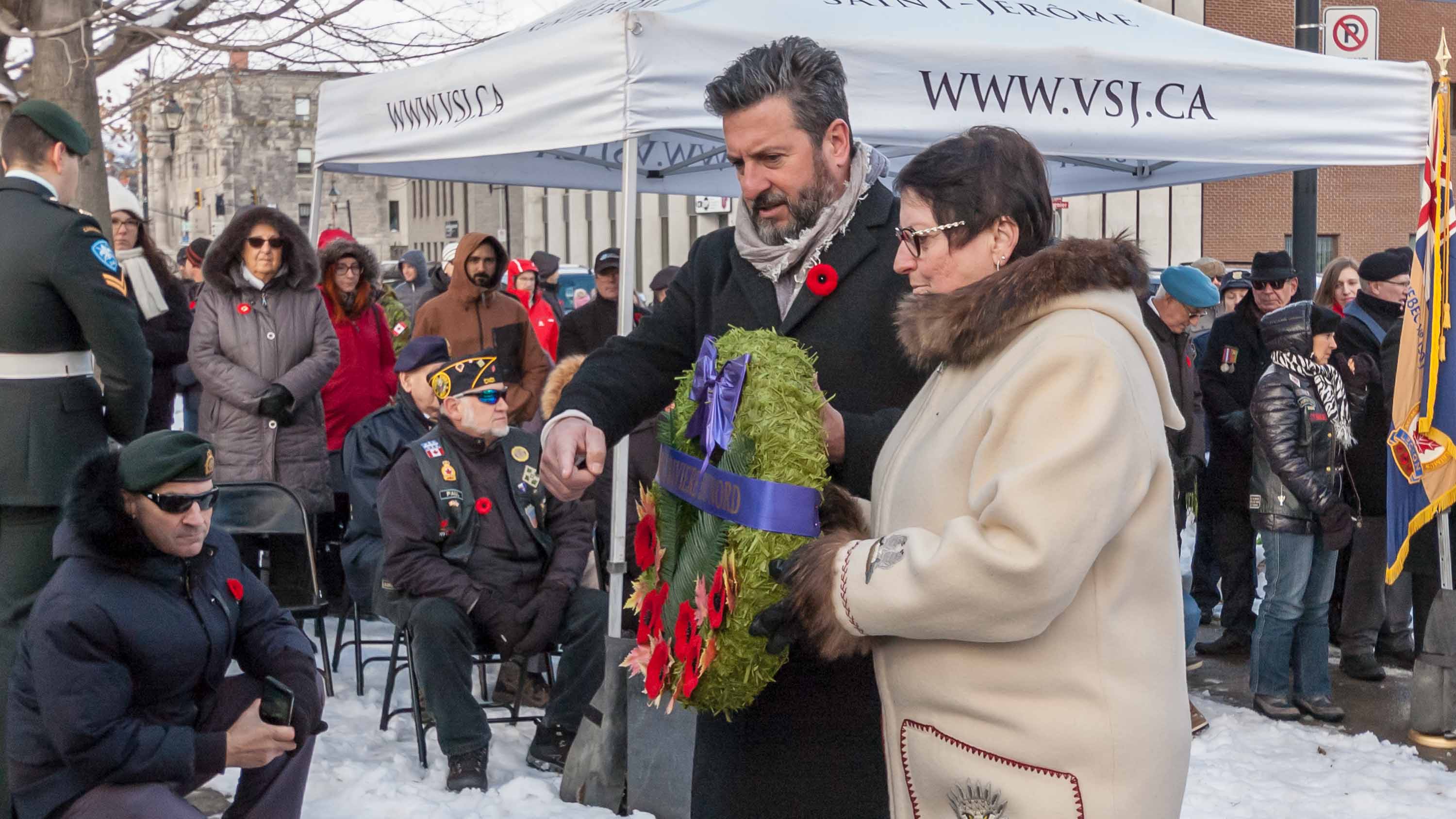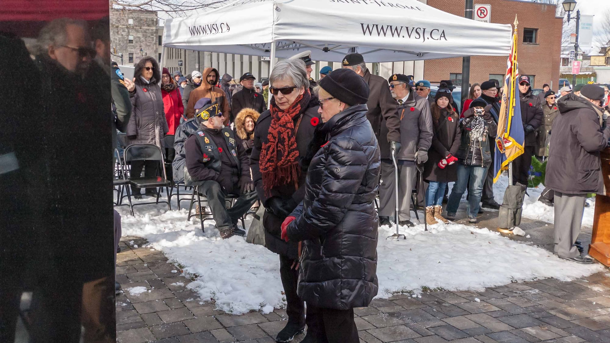 Il a fait froid le 11 novembre 2018. Deux degrés Celsius sous zéro. Avec la neige, arrivée tôt cette année, la cérémonie au cénotaphe de la rue Du Palais s'est déroulée sur fond blanc.