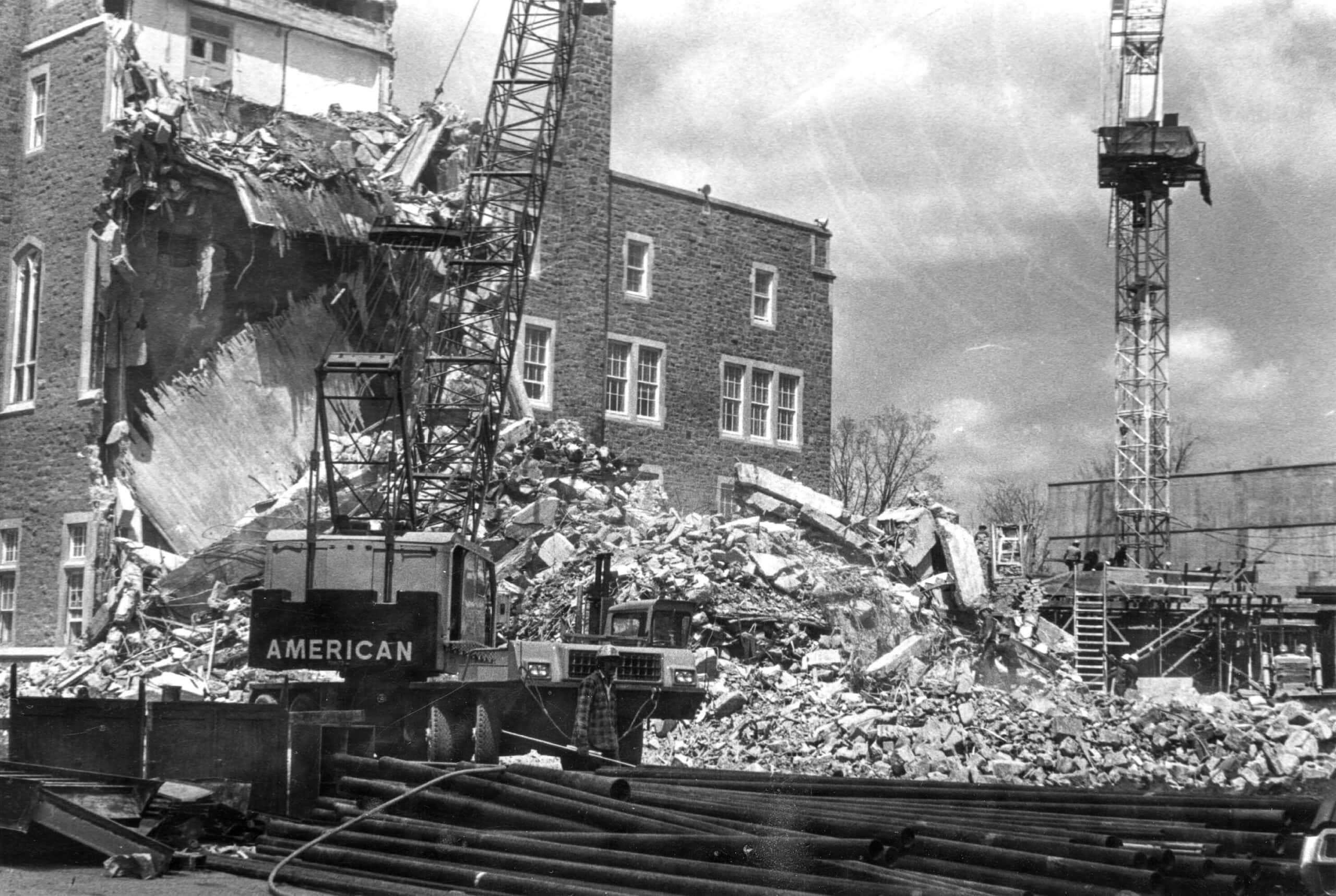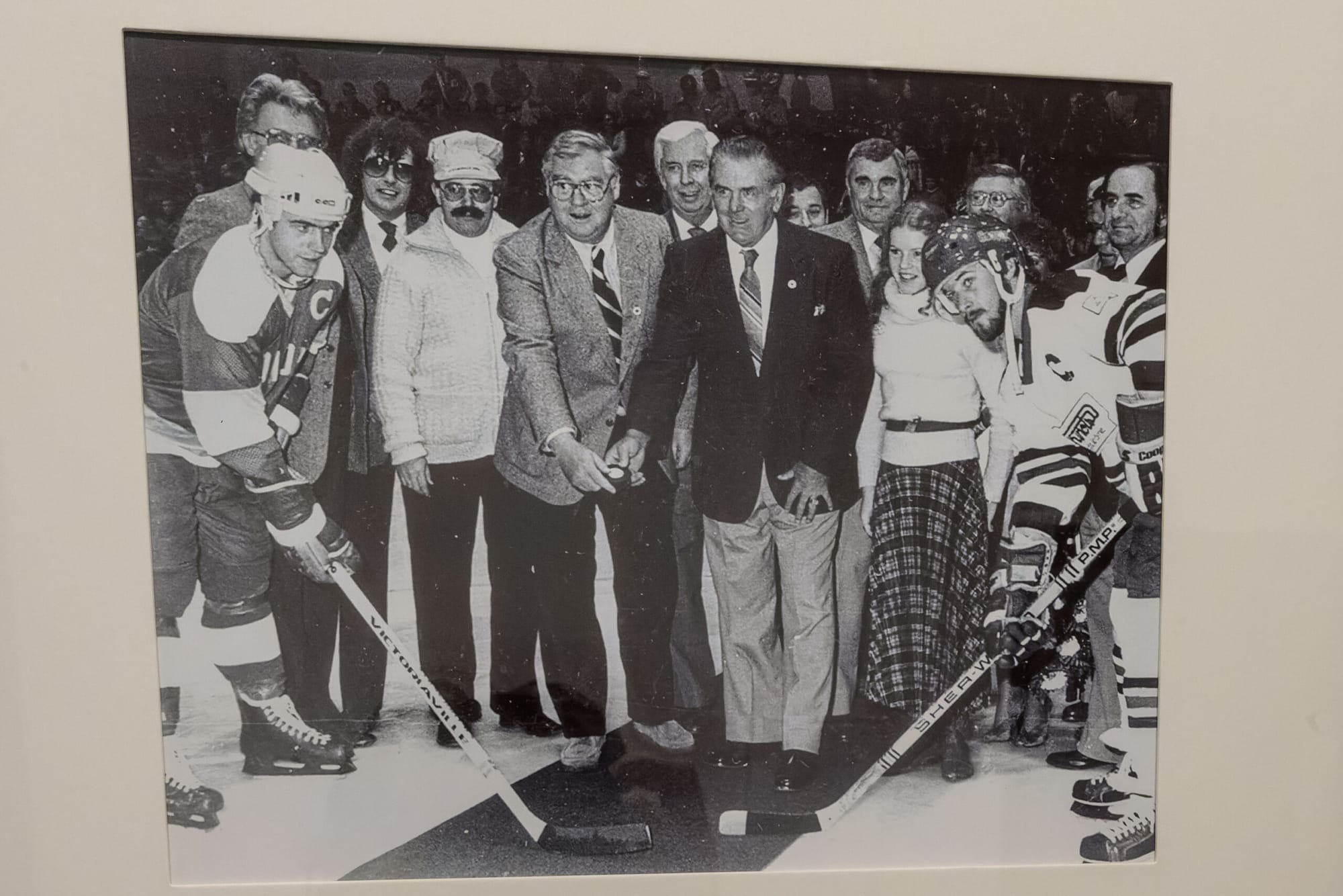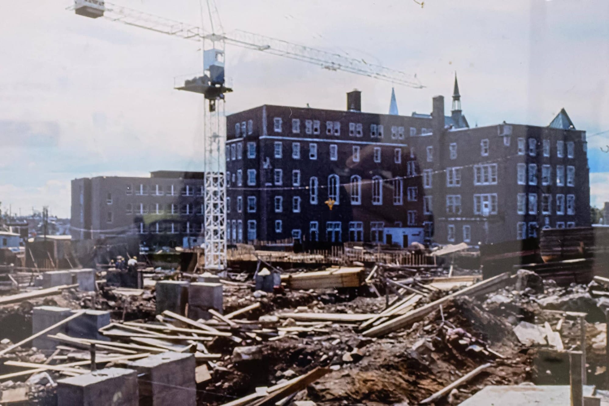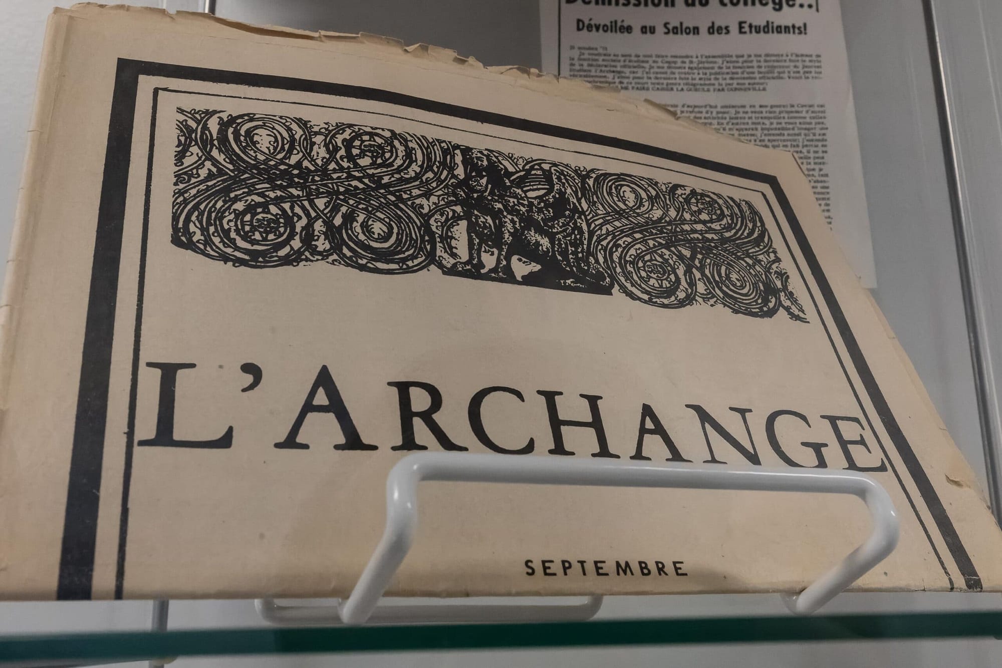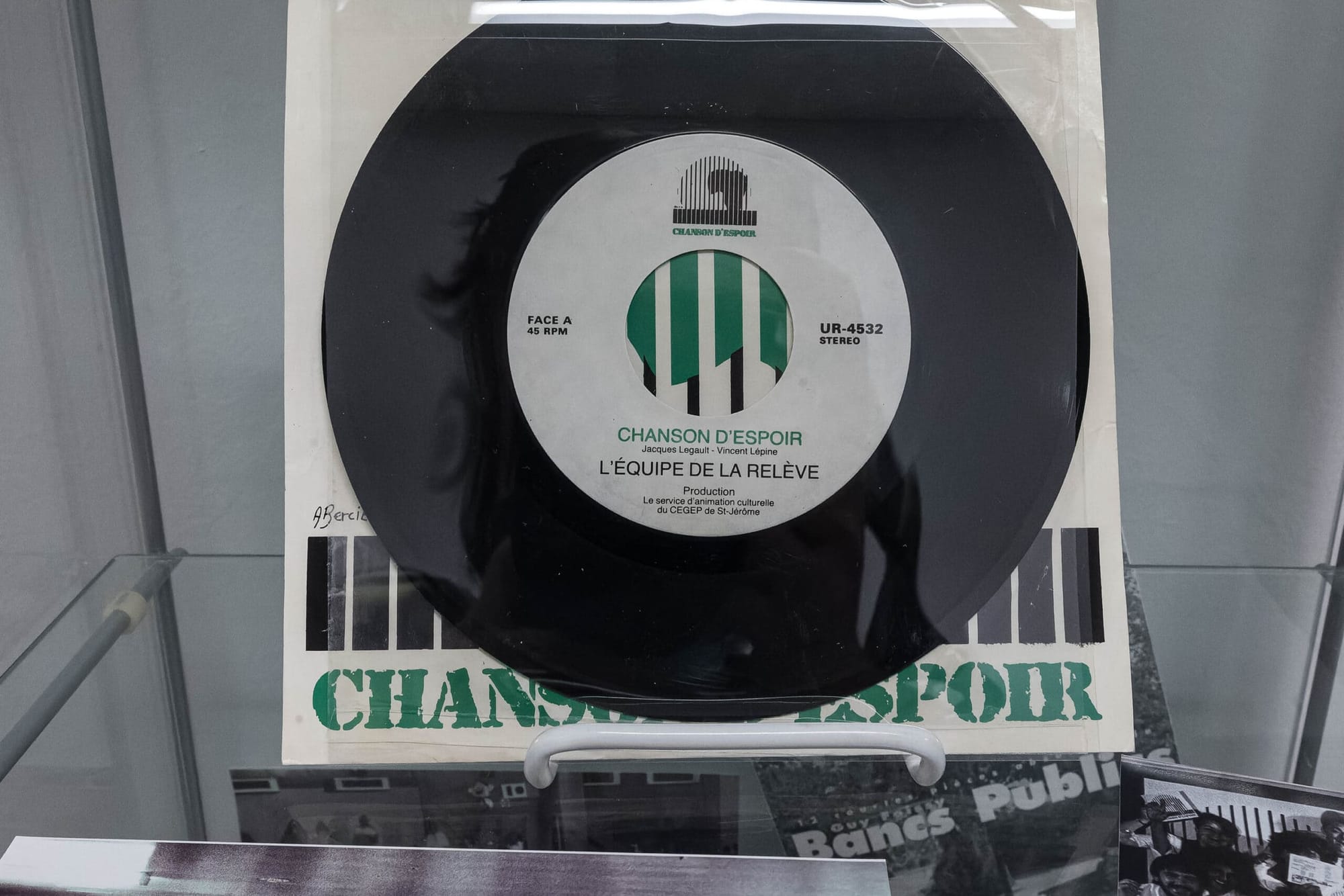 L'édifice qui a vu naître le Cégep de Saint-Jérôme était un pensionnat des Soeurs de Sainte-Anne qui se nommait le Pensionnat des Saints-Anges. Photos des exhibits par Charles Michaud/TopoLocalL'école normale installée dans le même édifice formait des enseignantes, un nom qui se conjuguait majoritairement au féminin à l'époque. Ici une photo d'un groupe de finissantes.Les vitrines de l'exposition montrent des photos des bâtiments de l'époque et des souvenirs de premières classes. Photo Charles Michaud/TopoLocalAu milieu des années 1970, le collège subit une première modernisation qui aboutira avec la démolition de la chapelle du couvent, superbe édifice dont la structure avait été jugée inutilisable. Des étudiants et des profs avaient présenté un spectacle/protestation intitulé on connaît ça le béton. Photo d'archivesDémolition de la chapelle de l'édifice de la rue Fournier. Vers 1974. Photo numérisée tirée des archives de Gleason ThébergeL'exposition reproduit cette première page de l'Écho du Nord du 29 avril 1970 qui annonce la création du Cégep de Saint-Jérôme. C'est Jean-Guy Cardinal, alors ministre de l'Éducation, qui en fait l'annonce. Cardinal deviendra député de Prévost en 1976.Cet exemplaire un peu écorné du rapport Parent, la pierre d'assise de la création des cégeps et de la laïcisation de l'enseignement au Québec, fait partie de la collection.Photo d'une étudiante en sciences infirmières, encore un des départements les plus importants du Cégep de Saint-Jérôme.Un exemplaire jauni du journal L'Archange, un journal étudiant résolument de gauche dans les années 1970. Un imprimeur local avait même refusé de l'imprimer, décision vivement contestée par ses éditeurs.Autre document-témoin de son époque: une pétition demandant l'enlèvement des « affreux pare-soleils qui donnent au cégep l'allure d'une prison ».Une photo d'une des premières mises au jeu officielles des Cheminots de Saint-Jérôme, en octobre 1980, effectuée par le légendaire Maurice «Rocket» Richard, en compagnie du maire de Saint-Jérôme de l'époque, Bernard Parent. Quelques autres personnalités locales sont plus ou moins visibles sur la photo, donc le DG du cégep Claude Lalonde, le DG du Conseil de développement des Laurentides et pionnier de la conservation du P'tit train du Nord Serge Boucher, Yves Nadon, lui-même une légende sportive locale, de même que la patineuse Julie Brault et Roger Landry, du Cégep de Saint-Jérôme.Une vitrine rappelle les nombreuses troupes de danse qui se sont succédées au cégep. On disait à l'époque «danse moderne» mais la troupe Khorévi, consacrée à la danse contemporaine, est toujours active et attachée au Cégep.Un disque vinyle 45 tours produit à l'époque par le service d'animation culturelle du Cégep.Plusieurs professeurs du cégep ont publié des volumes sur divers sujets, dont le document de référence par excellence sur l'histoire des Laurentides de l'auteur et historien Serge Laurin, montré ici sur la photo. Les vitrines font voir également d'autres oeuvres connues, dont un exemplaire de la pièce Encore un peu du jérômien Serge Mercier, dont Radio-Canada avait fait le sujet d'un de ses Beaux dimanches.Gleason Théberge, enseignant du cégep à la retraite, en compagnie de Louis Parent, membre du conseil d'administration de HAL. Photo par Charles Michaud/TopoLocal