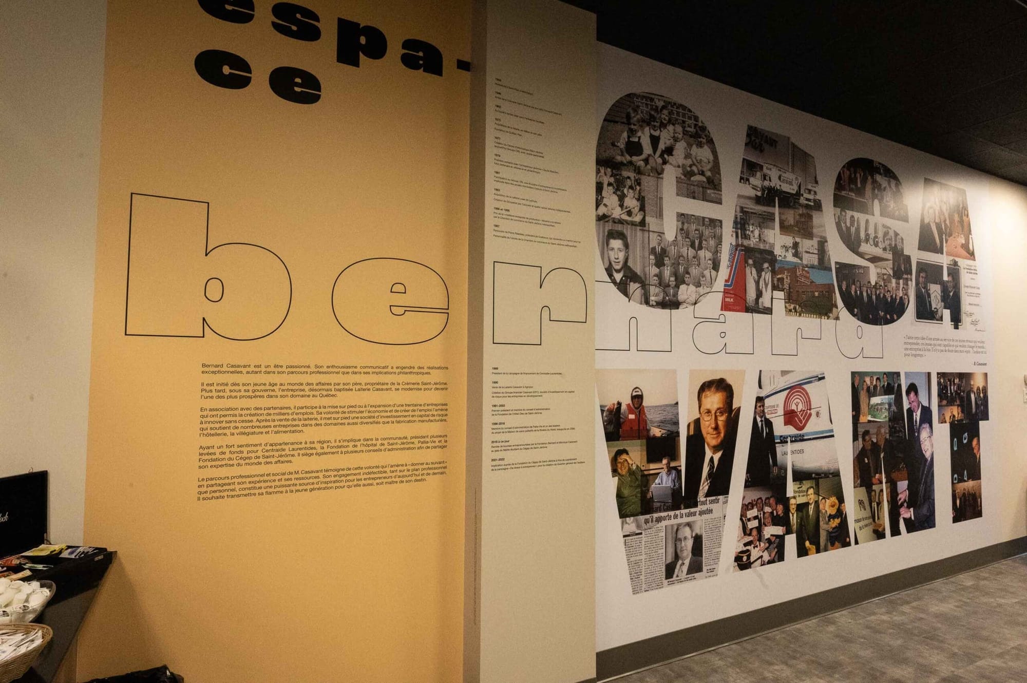 Le lieu portera le nom d’Espace Bernard Casavant, un hommage à celui qui a été la bougie d’allumage de ce projet. On y trouve une murale qui rappelle la vie d’entrepreneur de Bernard Casavant ainsi que ses engagements philanthropiques. En plus de cet espace à usage multiple, deux bureaux fermés ainsi qu’une salle de conférence seront disponibles à la location.