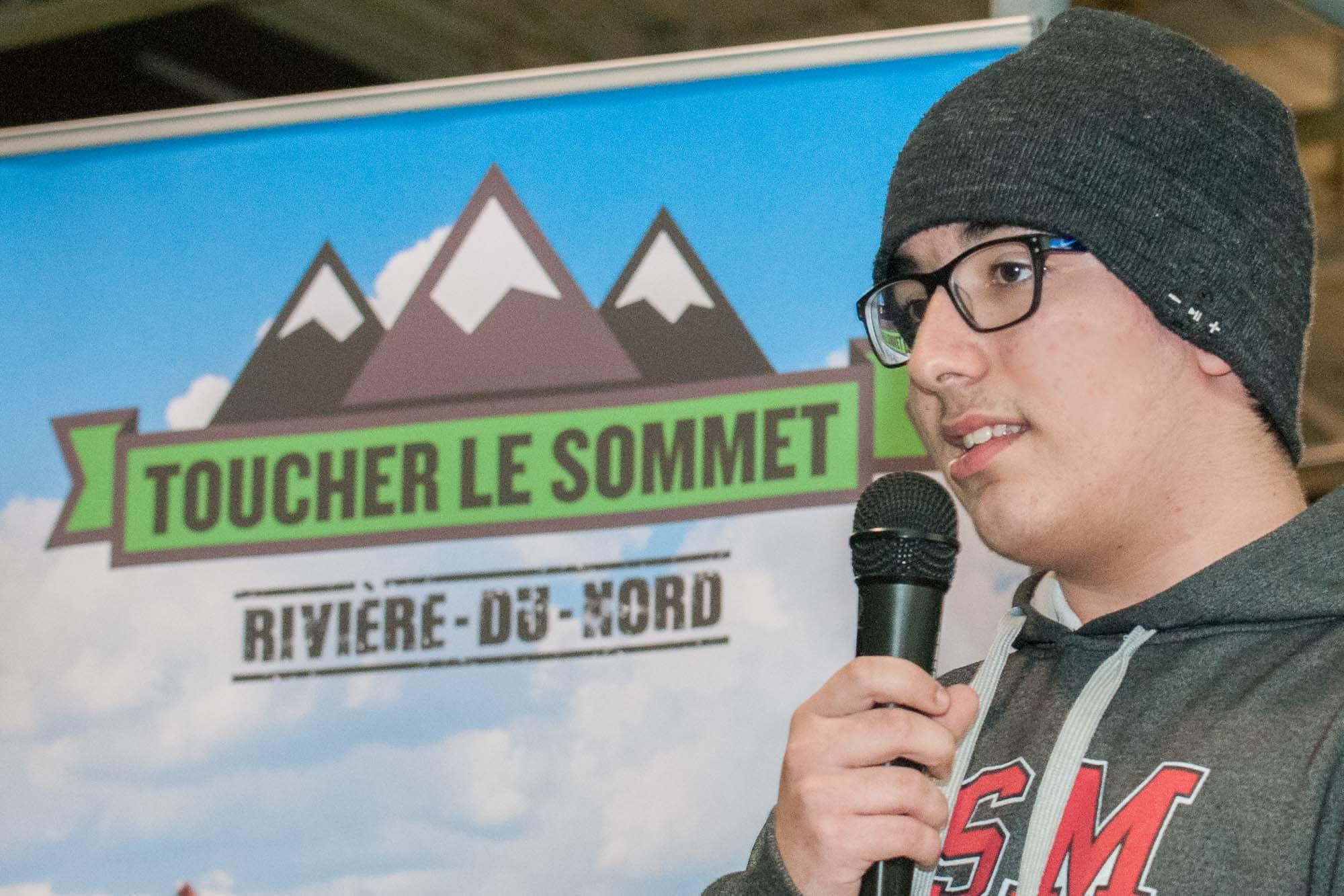 Félix Martin, un étudiant qui agit à titre de jeune ambassadeur, a participé à l'initiative en 2016 au sein de la Commission scolaire de la Seigneurie-des-Mille-Îles. Il est venu dire aux participants à quel point sa participation à Toucher le sommet lui a permis d'acquérir de la confiance en ses moyens et réaliser son potentiel.