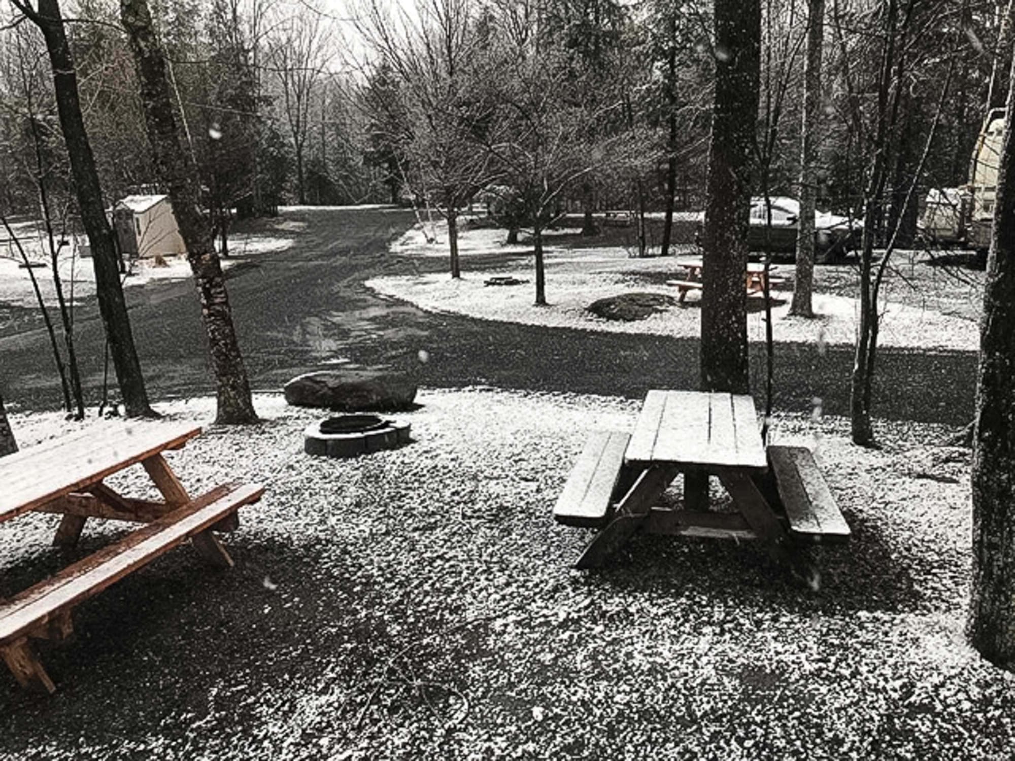 Nous avons rencontré des problèmes avec les campings à partir de la Virginie. Ils étaient fermés en Virginie, en Pennsylvanie et peut-être même l’état de New York. Nous avons donc fait une journée de 12 heures et couché dans une station service de camionneurs avant d’entrer dans l’état de New York. La situation semble avoir changé depuis.