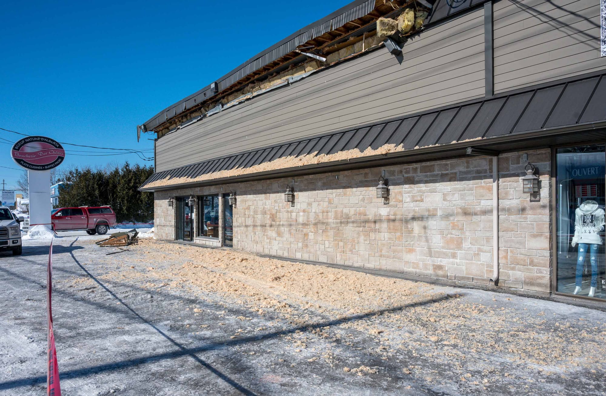 Quelques curieux s'arrêtaient devant les lieux dimanche matin. L'édifice était entouré d'un cordon de sécurité. La boucherie était évidemment fermée. L'alimentation en eau ainsi que l'électricité ont été coupés par précaution.