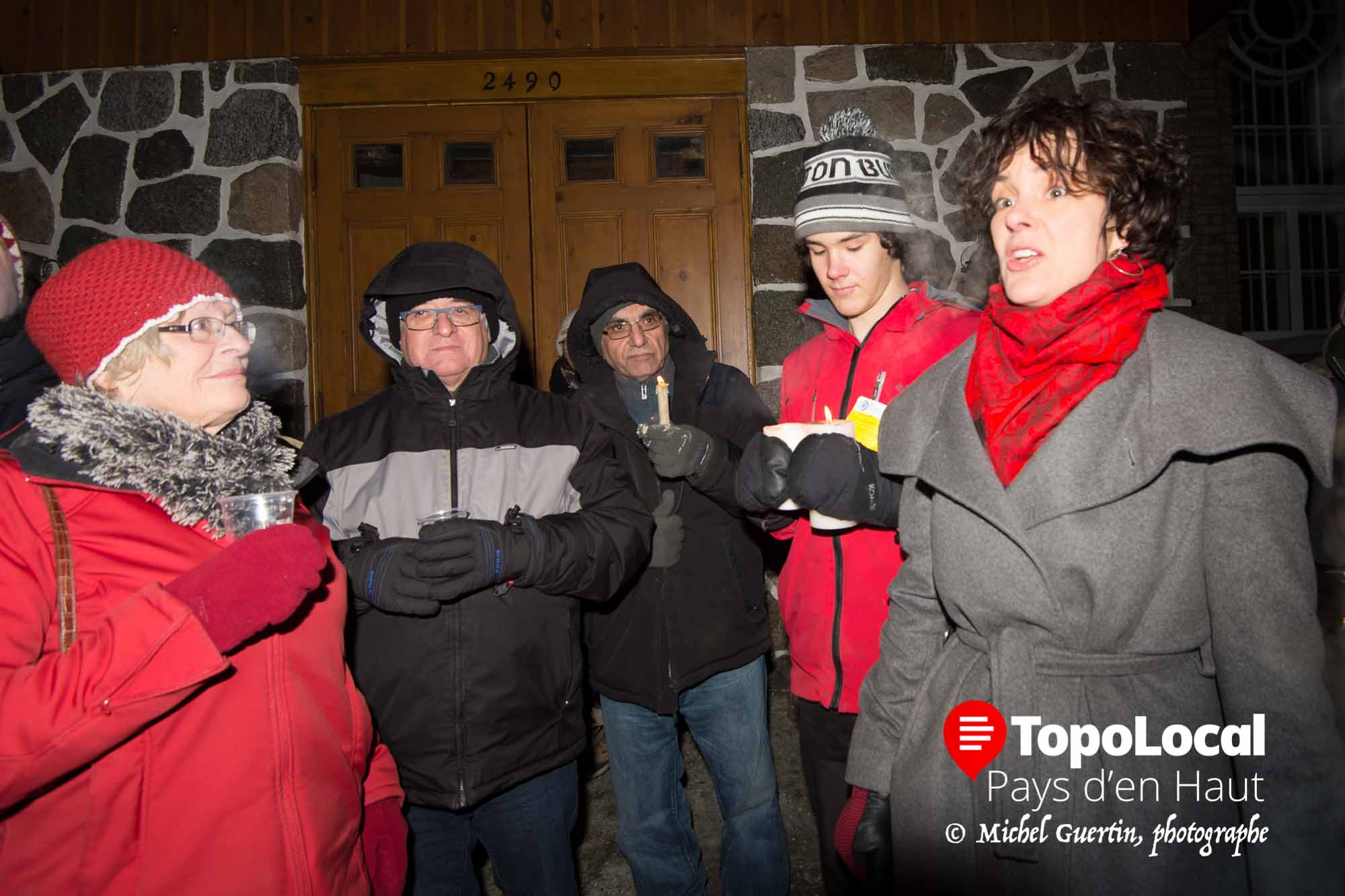 Les gens offraient leurs condoléance à la famille syrienne nouvellement arrivée dans les Laurentides, qui était présente à cette vigile. Une partie des mots de la chanson Mon pays de Gilles Vigneault leur a été traduite en guise de démonstration de la solidarité de cette communauté.